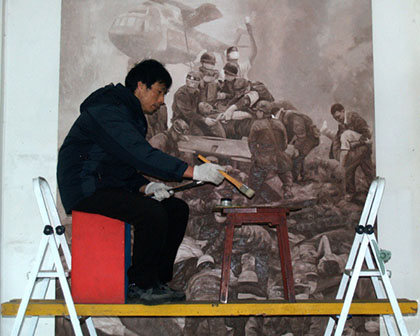 2009年2月12日阎晓庆创作的巨幅油画