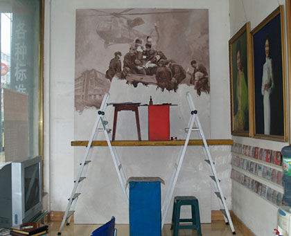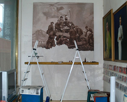 2009年1月阎晓庆在工作室搭建的简易高架上绘制